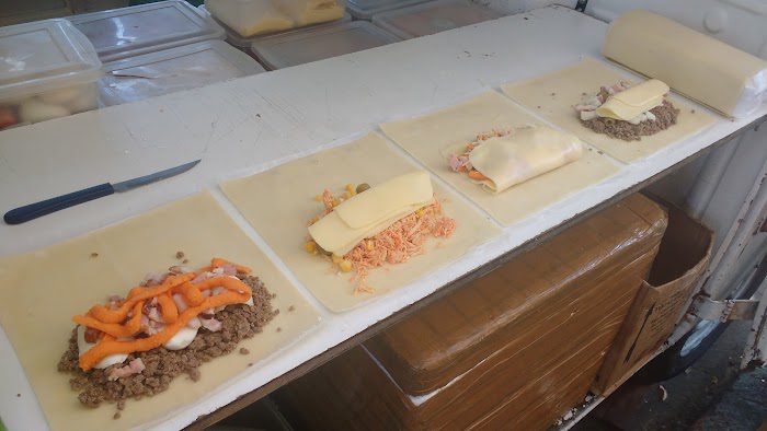 Bem recheado e podendo montar o pastel com até 4 recheios, bem limpo e organizado !