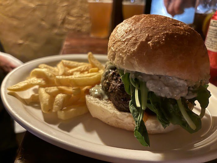 Pedimos um prato típico de linguiças com purê de batata, couve e bacon, estava uma delícia. Nossos amigos pediram batata e hambúrgueres e gostaram.