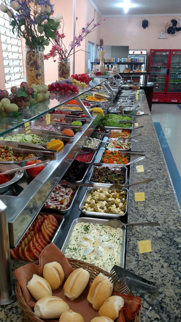 Buffet de salada e pratos quentes bem diversificado. Para quem almoça mais cedo, das 11:00 às 12:00, ou mais tarde, após as 14:00, o preço do quilo fica mais em conta. Ambiente bem arejado e amplo.